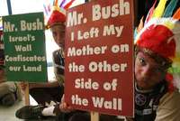 Ni�palestinos con atuendos ind�nas se manifiestan en Ramallah contra las colonias jud� FOTO Afp