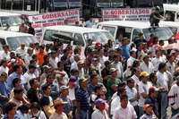 Protesta de transportistas del valle de Mexico frente al palacio de gobierno de Toluca para exigir "reordenamiento y seguridad" en el sector FOTO Mario V�uez de la Torre