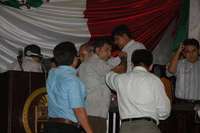En un recinto repleto, dominado por burócratas del gobierno del estado y del ayuntamiento, la tardanza de los perredistas obligó al panista Mario Rivero Real a dar inicio a la sesión, asumiendo el cargo de presidente.
