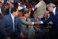 L�ro C�enas Batel, Cuauht�c C�enas Sol�no -quien saluda al perredista Graco Ram�z Garrido- y Porfirio Mu�Ledo durante la toma de posesi�e Zeferino Torreblanca FOTO Oscar Alvarado