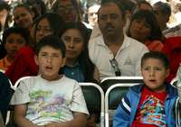 Conforme transcurría el tiempo llegaban los recuerdo de la infancia para los adolescentes, los niños se divertían adivinando el título del cuento. Los padres, en su afán por que sus hijos observaran de cerca a los personajes, los llevaron al frente del escenario para que estuvieran sentados en el piso.