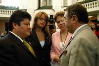 Carlos Reyes G�z (PRD), Lorena Villavicencio (PRD), Martha Teresa Delgado (independiente) y Manuel Jim�z Guzm�(PRI), en un momento de la sesi�e ayer de la Asamblea Legislativa del Distrito Federal, tras la reincorporaci� los trabajos de las bancadas verde y tricolor