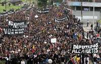 Miles de universitarios marcharon ayer en Quito, Ecuador, en protesta por el regreso al pa�del ex presidente Abdal�ucaram, a quien la Suprema Corte de Justicia exoner� cargos de peculado y enriquecimiento il�to FOTO Afp