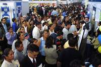Cientos de personas abarrotaron ayer los stands de la d�motercera Feria del Empleo de la Ciudad de M�co, realizada en el Palacio de los Deportes FOTO Roberto Garc�Ortiz