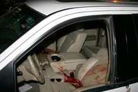 As�ued� camioneta del director del peri�o La Opini�e Poza Rica, Ra�bb Guerrero, quien fue asesinado en la carretera que conduce a Papantla, Veracruz FOTO Notimex