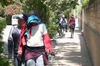 Camino a un descanso, y luego, a seguir con la jornada. La imagen, frente a la casa de Mercedes Quesada Echaine, madre del presidente Vicente Fox, en el rancho San Crist� FOTO Mart�Diego Rodr�ez