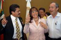 Yeidckol Polevnsky Gurwitz, tras solicitar su registro ante el Instituto Electoral del Estado de M�co como candidata del PRD a la gubernatura del estado. La flanquean Ricardo Monreal Avila y Leonel Cota Monta�OTO Agencia MTV