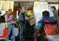 Mientras unas 40 personas se unían a la oración, sobre la calle no cesaban de pasar automóviles que se detenían para leer los carteles pegados.