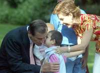 Vicente Fox, un ni�on c�er y Marta Sahag�n el acto de ayer en Los Pinos FOTO Guillermo Sologuren