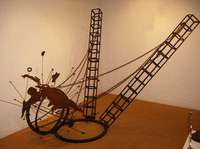 En la escultura Mundo dislocado, nos lleva la chin..., dos torres idénticas jalan con cadenas a los cinco continentes del globo terráqueo que sale de su eje. Las torres en realidad eran unos estantes de libros que Malcolm Coelho, autor de la pieza, encontró más o menos en la misma época en que cayeron las Gemelas y que unió para que adquiriesen su forma actual.