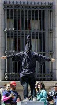 Un manifestante escenifica en Washington una sesi�e torturas en la c�el de Abu Ghraib FOTO Afp
