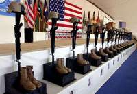 Ampliar la imagen En la base a�a de Bagram, norte de Kabul, se hizo un homenaje a los 18 soldados estadunidenses que fallecieron el pasado 6 de abril al desplomarse el helic�ro en que viajaban FOTO Afp