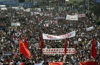 Por primera vez la agencia China Nueva reseñó la manifestación en su servicio redactado en inglés y evocó una participación de "decenas de miles de personas". La semana pasada los medios de comunicación oficiales omitieron cualquier tipo de información sobre las protestas, que reunieron a miles de manifestantes en Pekín, Cantón y Shenzhen.