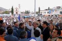 Rub�Mendoza Ayala, candidato del PAN, durante el arranque de su campa�n la plaza principal de Atlacomulco, ante unos 4 mil simpatizantes FOTO Agencia Mvt