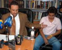 Alfonso Rodr�ez, abogado del joven Federico Ruiz Lomel�de playera blanca) explica en conferencia de prensa la situaci�e su defendido FOTO DEMIAN CHAVEZ