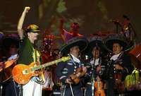 Aún no acababa la batucada roquera cuando subieron los vernáculos del Mariachi Gama Mil. Los músicos con sus violines y guitarrones se arrancaron cual poseídos por unos demonios pachecos. Todo es fusión y todo cabe en un jarrito. Rocanroleros y mariachis, africanos e hispanoamericanos hicieron brotar un sonido pesado. Santana, cual director de orquesta, marcaba con su batuta imaginaria algún compás.