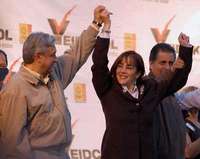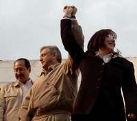 Ecatepec de Morelos, Mex., 16 de abril. Ante unas 10 mil personas mojadas, rabiosas, gritonas y optimistas, Andrés Manuel López Obrador inicia su "gira de resistencia" para denunciar por todo el país la injusticia que está sufriendo, y Yeidckol Polevnsky Gurwitz arranca su campaña en pos de la gubernatura mexiquense. Dos personajes, dos empresas políticas, un solo proyecto, un acuerdo expreso y muy visible.