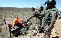 Elementos de la Patrulla Fronteriza platican con miembros del Grupo Beta mexicano, en la frontera entre Arizona y Sonora FOTO Reuters