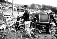Entre basura, tablones y muebles viejos, un peque�uega en el asentamiento irregular del Hielo, en Huixquilucan, estado de M�co FOTO La Jornada