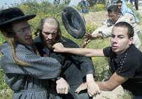 Agentes privados dispersan a jud� ultraortodoxos que protestaban por la profanaci�e tumbas debido a la construcci�e una carretera, ayer en Regavim, norte de Israel FOTO Afp