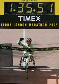 Londres, 17 de abril. El mexicano Saúl Mendoza conquistó por segundo año consecutivo el Maratón Internacional de Londres sobre silla de ruedas, en la versión 25 de la competencia, con los triunfos de la británica Paula Radcliffe, por tercera ocasión, y el keniano Martin Lel, quienes impusieron la mejor marca de la temporada en 42.195 kilómetros.