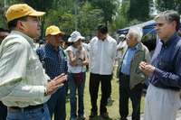 San Cristobal, Gto., 17 de abril. Mientras el presidente Vicente Fox salía de la misa dominical acompañado por su esposa, Marta Sahagún, integrantes de cinco organizaciones civiles y la representación del comité estatal del Partido de la Revolución Democrática (PRD) se manifestaron a las afueras de la comunidad, frente a un cerco de seguridad que montó el Estado Mayor Presidencial (EMP) con más elementos que en días anteriores y con vallas reforzadas.