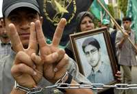 Aspecto de la manifestaci�e ayer en la ciudad de Gaza para exigir a Israel la liberaci�e unos 8 mil palestinos presos FOTO Afp