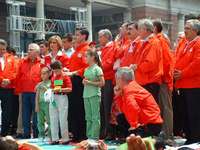 El gobernador Arturo Montiel Rojas, en medio, rodeado de la clase pol�ca mexiquense, durante el arranque de campa�e Enrique Pe�ieto, candidato pri�a al gobierno del estado FOTO Mario A. Nu�L�