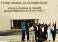 Diputados locales del PRD, antes de ingresar a las oficinas del Poder Judicial de la Federaci�n el Reclusorio Oriente, donde entregaron un documento en el juzgado ante el que fue consignada por la PGR la averiguaci�revia sobre el caso El Encino FOTO Marco Pel�