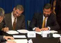 Santiago Levy y Juan Ram�e la Fuente, en la firma de tres convenios de colaboraci�ntre la UNAM y el Seguro Social FOTO Notimex