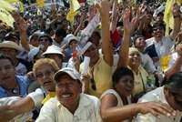 Acapulco, Gro., 23 de abril. Andrés Manuel López Obrador señaló que donde quiera que ha ido, la gente está en pie de lucha y que en las últimas encuestas, "les informo, porque además lo saben en Los Pinos, el PRI pa' abajo, el PAN pa' abajo, la PGR pa' abajo y Fox pa' abajo, mientras el movimiento democrático pa' arriba. Pensaban que después del desafuero todo se iba a apaciguar, que iba a ser muy fácil".
