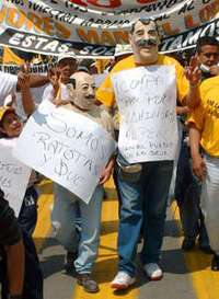 Participantes en la marcha del silencio en apoyo a Andr�Manuel L� Obrador se caracterizaron de diversos personajes de la vida pol�ca y de los partidos. En la imagen, a su paso por Paseo de la Reforma FOTO Mario Antonio Nu�