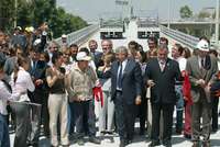 El jefe de Gobierno del Distrito Federal, Andr�Manuel L� Obrador, inaugur�er el puente que conecta el Eje 5 Poniente con Prolongaci�an Antonio, donde invit�uno de los trabajadores de la construcci� cortar el list�OTO Mar�Mel�rez Parada