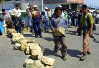 Oxchuc, Chiapas, 25 de abril. Aproximadamente 500 indígenas marcharon por las calles de este poblado y bloquearon la carretera que comunica a San Cristóbal de las Casas con Palenque, para exigir la destitución de la alcaldesa priísta de Oxchuc, María Gloria Sánchez Gómez, a quien acusan de realizar actos de "represión" contra militantes del Partido Verde Ecologista de México (PVEM) y de las Coordinadoras de la Sociedad Civil en Resistencia.