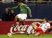Pese a la mayor estatura de los europeos, el ariete Omar Bravo, quien en la liga mexicana lucha por el título de goleo con 10 tantos -el argentino Matías Vuoso es líder, con 12-, supo anticiparse a la marca del capitán Tomasz Klos y el otro defensa central, Arkadiusz Glowacki, sólo que envió dos cabezazos hacia los costados.