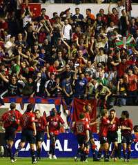 J� de la afici�el Osasuna tras el triunfo sobre el Villarreal FOTO Reuters