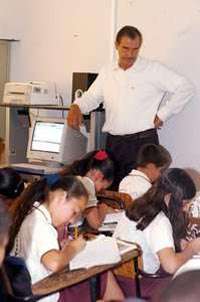 El presidente Vicente Fox, durante la supervisi�el programa Enciclomedia FOTO Notimex/Gustavo Benitez