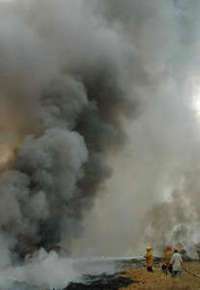 Bomberos intentan sofocar un incendio forestal ocurrido el pasado jueves cerca de la ciudad de Villahermosa, Tabasco. Las altas temperaturas han causado conflagraciones forestales en varias partes del pa�FOTO Ap
