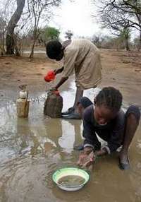 Ni�sudaneses desplazados, originarios de la sure�egi�e Darfur, el martes pasado recog� agua de lluvia para beber y cocinar FOTO Reuters