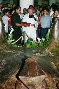 El arzobispo de San Salvador, Fernando S�z, luego de su homil�dominical FOTO Reuters