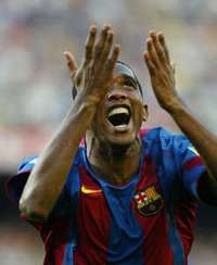 El camerun�Samuel Eto�o, del Barcelona, celebra su anotaci�OTO Ap