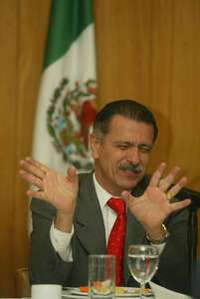 Casi al terminar la conferencia, una reportera preguntó al funcionario sobre la versión de que sustituirá a Santiago Creel, secretario de Gobernación. Comentó: "el único piloto que puede llevar a alguien del Periférico a Bucareli es el presidente Vicente Fox. Lo puede llevar desde el Ajusco o lo puede llevar desde cualquier otro domicilio.