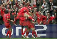 Jugadores del Liverpool festejan su pase a la final del torneo europeo FOTO Ap