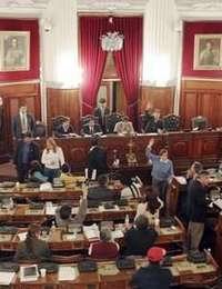 Integrantes de la C�ra de Diputados, durante el debate de la controvertida ley de hidrocarburos en el Congreso de Bolivia, en La Paz FOTO Reuters