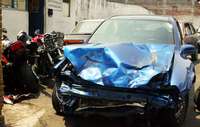El autom� y las motocicletas involucrados en el accidente fueron llevados a instalaciones de la procuradur�capitalina en Coyoac�FOTO Alfredo Dom�uez