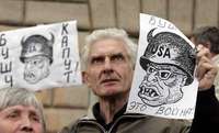 Ampliar la imagen Comunistas rusos protestan en Mosc�o antes de la llegada del presidente estadunidense, George W. Bush, quien realiza una visita oficial que ha provocado cr�cas en ese enorme pa�FOTO Reuters