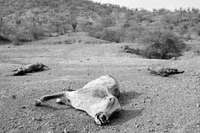 Cabezas de ganado yacen muertas en la comunidad El Platanito, municipio de Arteaga, Michoac� debido a la falta de agua FOTO Eduardo Herrejon/ la Jornada Michoacan