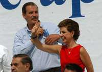 Leon, Gto., 7 de mayo. Con su nueva credencial de panista de Guanajuato en el bolsillo derecho de su camisa vaquera y arropado por cientos de correligionarios, un eufórico Vicente Fox Quesada sostuvo: ''quienquiera que esté en la boleta electoral de 2006 habrá de ser derrotado por el candidato de Acción Nacional".