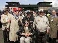 Harry C. Saunders, primer soldado estadunidense que entr� campo de concentraci�azi de Mauthausen, en Austria, es llevado en silla de ruedas por los sobrevivientes del exterminio a los que liber� agosto de 1945 FOTO Reuters