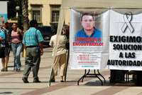 M�o en la plaza Central de Hermosillo, Sonora, donde se expusieron los trabajos period�icos del reportero de El Imparcial Alfredo Jim�z Mota, desaparecido desde el 2 de abril FOTO Cortes�Cambio Sonora